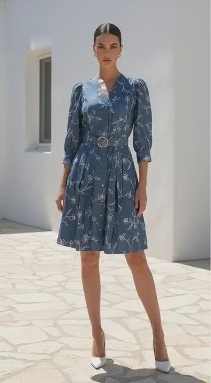 Martine Dress | Blue - White