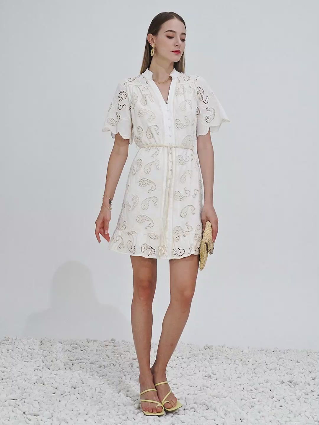 GDS Layla Embroidery Short Dress | Cannoli Cream