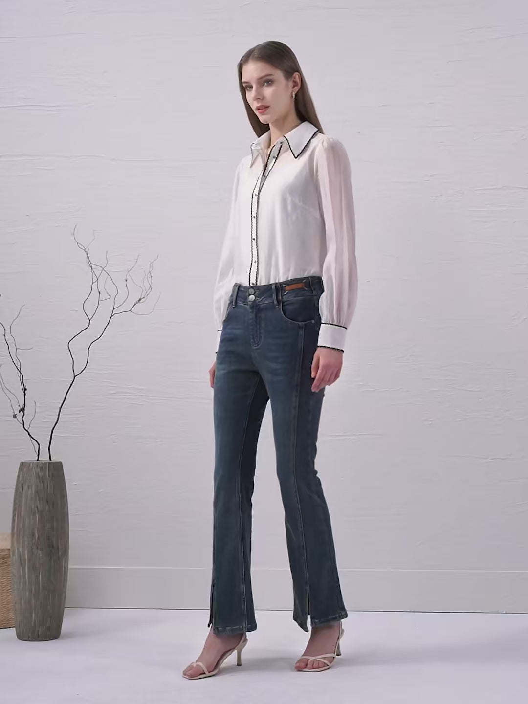 Bring some sweetness with a hint of edge to your wardrobe with the Missika Tencel blouse. It's a white blouse that features black border embroidery to create a striking contrast. It breathes new life into the good old white blouse that you can count on for just about every one of your fashion whims and fancies. The classic simplicity of this ladies white shirt is complemented by the contrasting modern black embroidery for a well-balanced look. Pair it with a simple black skirt for an adorable outfit with some grit, or wear it with jeans to create a chic casual look.